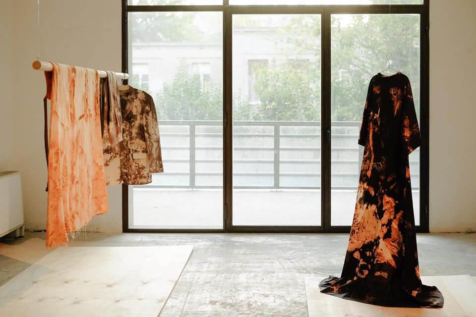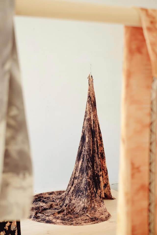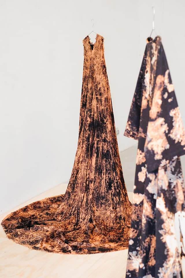 Through my on-going project Excuse My Dust Series, I experimented with various unorthodox dyeing techniques which allude to the process of destruction and decay. Emphasizing this aspects of fabric-treatment, I aimed to raise questions about impact of groundwater pollution by dyeing and bleaching techniques of large textile industries. Yet, patterns created through this procedures strongly echoed sense of ancestral past, connection to the land and it’s natural rhythm of grow and decay.
